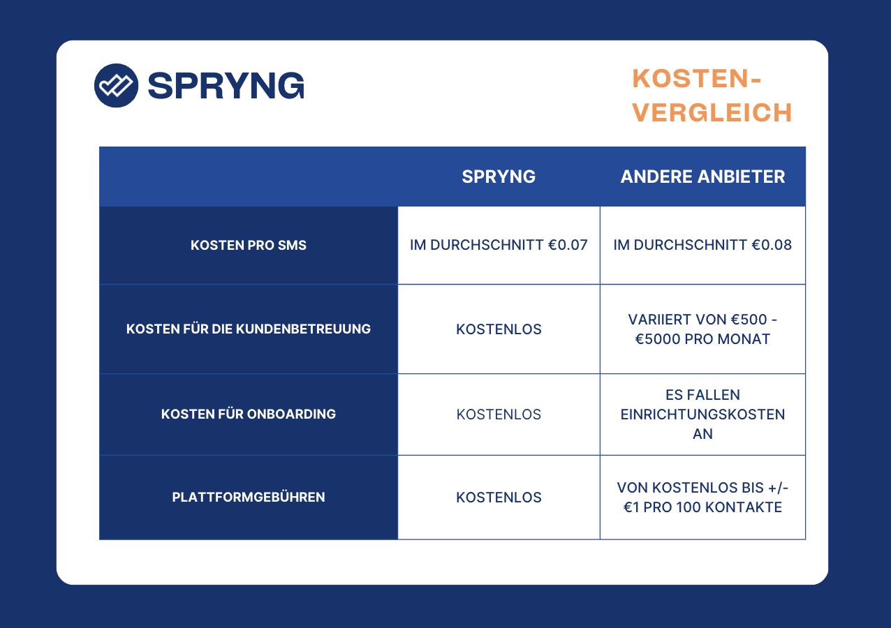 Szenario zum Vergleich der Preise von Spryng und einem alternativen SMS-Anbieter
