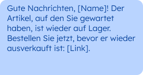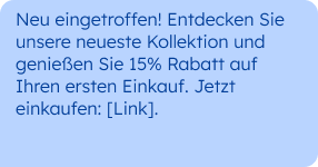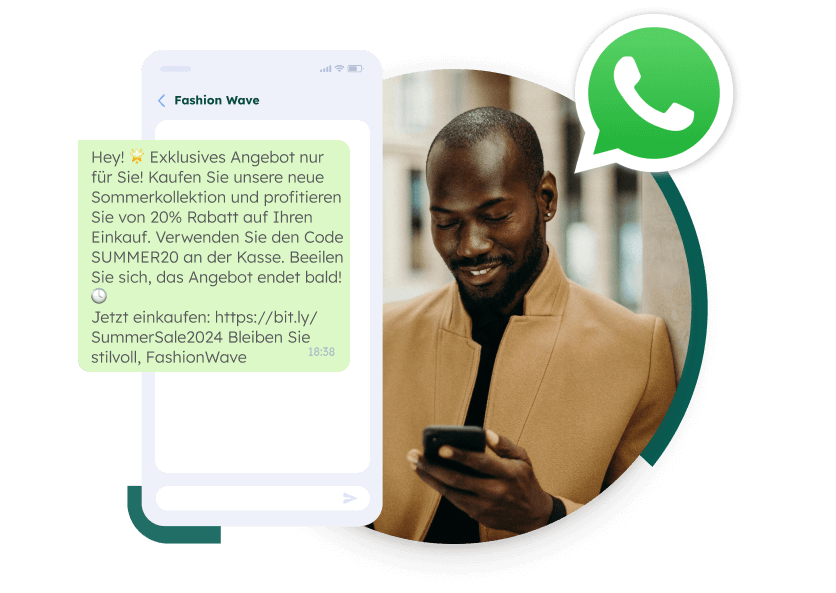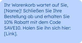 Senden Sie Erinnerungen an abgebrochene Einkäufe, personalisierte Rabattcodes oder nutzen Sie visuelle Elemente, um Ihre Produkte über WhatsApp zu bewerben – und das zu geringeren Kosten als bei herkömmlichen Messaging-Kanälen.